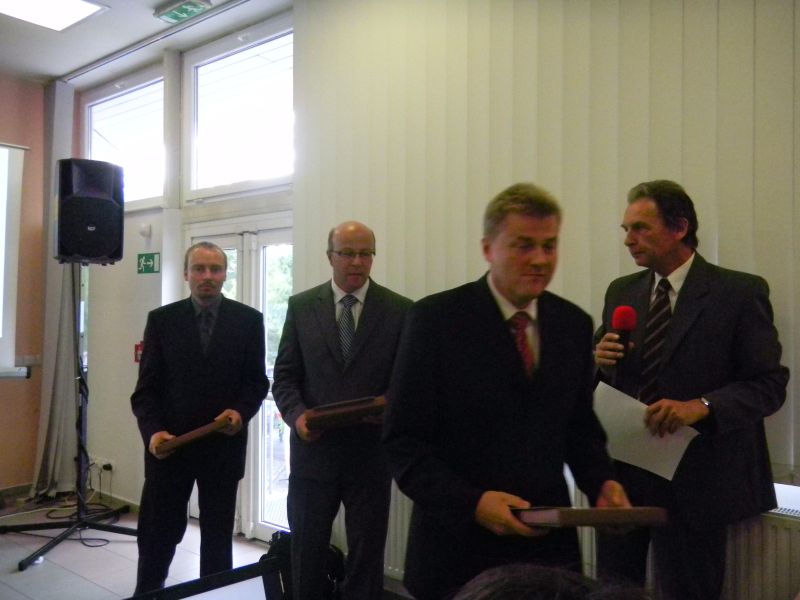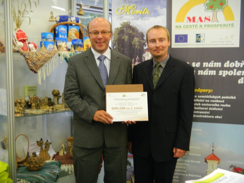 V rámci letošní výstavy „Země živitelka“ proběhlo za přítomnosti Ministra zemědělství ČR Ing. Ivana Fuksy i slavnostní vyhlášení 4.ročníku celostátní veřejné soutěže „Nejlepší realizované společné zařízení roku 2009“. Mezi oceněnými díly v kategorii Protierozní a vodohospodářská opatření skončil na vynikajícím druhém místě náš projekt „Protierozní a protipovodňová opatření v k.ú. Vincencov“! Diplom a cenu za druhé místo přímo v Českých Budějovicích převzali, společně s ředitelem Pozemkového úřadu v Prostějově Mgr. Jiřím Koudelkou, ředitel firmy Ing. Dušan Vystavěl a hlavní projektant Mojmír Grepl. Velkou měrou se na vypracování tohoto projektu podílel náš specialista vodohospodář Ing. Petr Kuda, na úspěchu, a hlavně funkčnosti celé stavby, mají velký podíl starosta obce Václav Kořínek, stavební dozor Václav Mastný a samozřejmě dodavatelský firma Proles s.r.o., Brno. Poděkování za perfektní spolupráci patří také pracovníkům Pozemkového úřadu v Prostějově Ing. Františku Kouřilovi, Ing. Zdeňku Chudožilovovi a zejména Ing. Haně Cetkovské, která přihlášku do soutěže perfektně připravila.